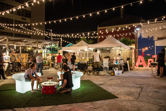 Located adjacent to the French Quarter, Frenchmen Street is where locals go to enjoy some of New Orleans’ most famous music venues, to devour local flavors, and to shop for local art. Five days a week, an outdoor market, the Frenchmen Street Art Market invites visitors to linger and enjoy the energetic ambiance of this colorful two block-long street. The market, located in an alley off of Frenchmen Street, features local artists showcasing their art, crafts, and jewelry, and it is well known for its fun outdoor living rooms.