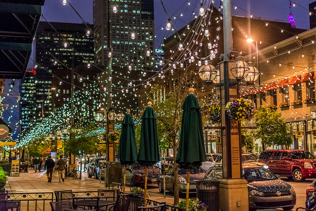The lights and banners draped between both sides of Larimer Street in Denver, Colorado, create an inviting and festive feel on this street at all times of the year.