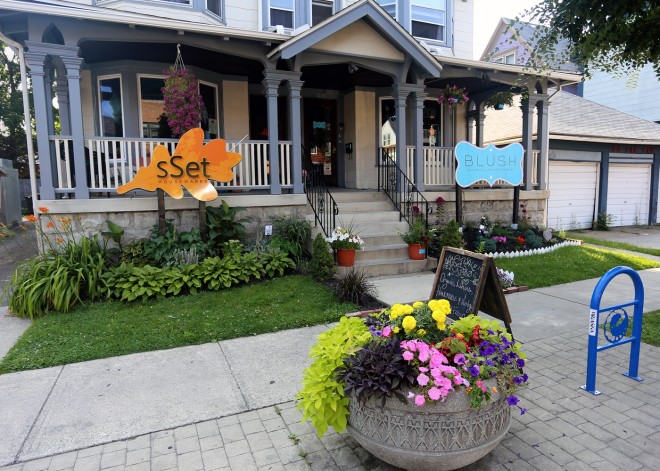 A vibrant commercial corridor with more than 200 restaurants, cafés, and boutiques, Buffalo's Elmwood Avenue lies at the heart of the neighborhood. To encourage an economic and cultural renaissance on this street, in 2005 the Elmwood Village Association urged for the widening of sidewalks along this avenue to prioritize pedestrians over cars. Because Elmwood Avenue's businesses rely on foot traffic, having great streetscape amenities and attractive ground floor facades has been key to its success. The avenue's human-scaled buildings and brightly-colored Victorian homes, along with its great shop windows, public art displays and murals, make this street an inviting and engaging commercial corridor.