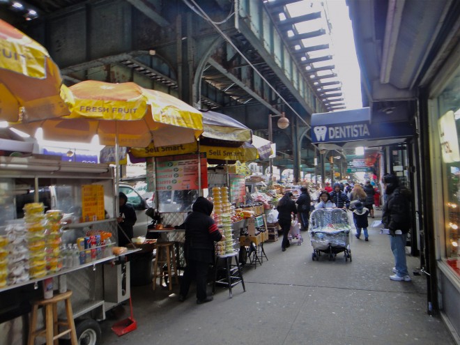 Located in New York’s most diverse borough, a combination of street vendors, a night market, and a plaza make visiting Roosevelt Avenue a unique cultural experience for locals and tourists alike. A new public space just off of 104th Street, Corona Plaza, has improved this street in recent years by offering a space for diners to sit and relax.