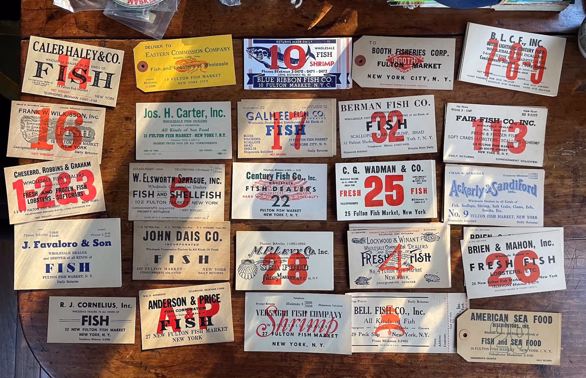 These cards come from Fulton Fish Market in New York City, which started in 1822 at South Street Seaport along the East River and operated in this location until 2005 when it moved to Hunts Point in the Bronx.