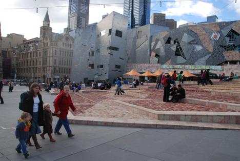 In commissioning these studies Adams and other city officials charted a bold course by defining public spaces as a key issue in for improving the city. Ultimately, this attention led to a huge investment in Melbourne’s public spaces, and ultimately an increase in the quality and vitality of the city’s public life. Federation Square, completed in 2002, was the greatest testament to the city's commitment to fostering public life. Built over a rail yard, Federation Square now functions as Melbourne’s living room, cultural center and nighttime destination. It took a large public investment of $473 million Australian (just under $400 Million U.S.) to do the project. Despite initial community resistance, the Square has been embraced by the city and is generating significant returns on many fronts. A destination such as this, despite greater difficulty in accessing via the private automobile, nonetheless brings people downtown and gives them a reason to stay and enjoy themselves.