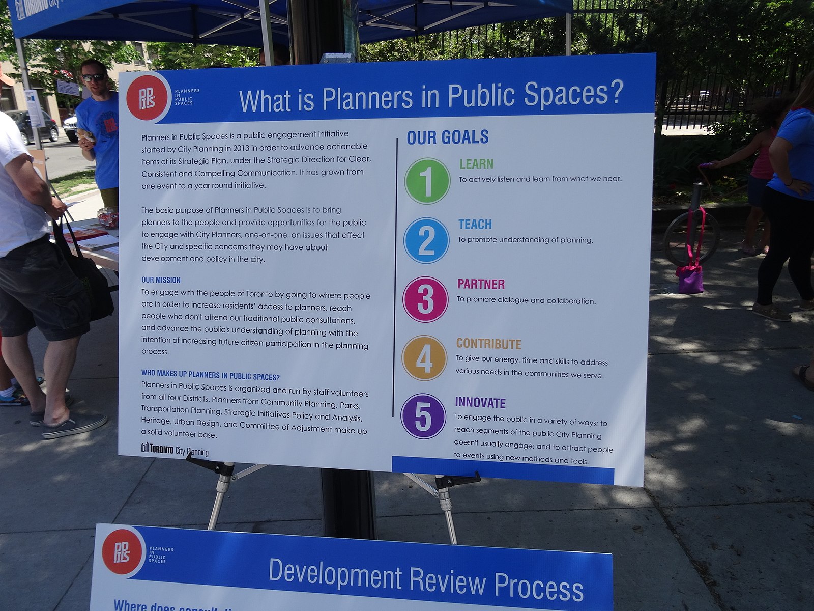 One simple but labor-intensive solution is offering more ways, places, and times to engage. Sidewalk Toronto has already been using Twitter and an “Ask Me Anything” (AMA) thread on Reddit to reach a different audience, but these strategies come with their own set of exclusions, and they are no replacement for accessible, approachable, in-person opportunities. For example, pop-up stations can help reach broad swaths of the general public at popular events, or particularly tricky-to-reach demographics at smaller community events and everyday places like grocery stores, schools and churches. For many people, answering a few questions, writing down a few ideas, or voting on the ideas of others at these stations can also be less intimidating than attending public meetings that often have an “insider” language of their own. Toronto’s former chief planner Jennifer Keesmaat has set a great precedent for this kind of engagement with the innovative Planners in Public Spaces (PiPS) program.