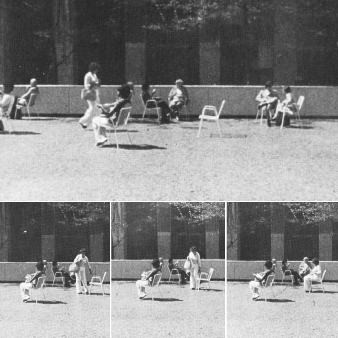 1. Adjustments: Perhaps the craving for a personalized experience of public spaces is why moveable chairs are the best option for seating in public spaces. Besides being more economical than benches, they give sitters the chance to put their feet up and arrange themselves at will. William H. Whyte was a proponent of moveable chairs, noting that most people move them by mere inches before sitting—signalling a polite “social distance” from strangers, and creating their own unique experience of the public space.