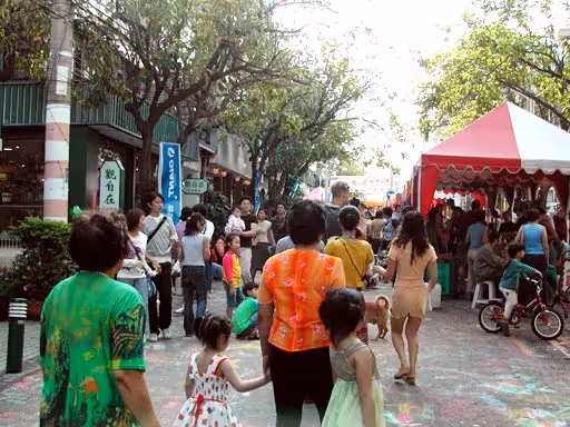 Art Street in Taichung County is one of the most progressive areas for urban living in Taiwan. Art Street is situated at the summit of Da Du Mountain next to Dong Hai University overlooking Taichung City below. Art Street is a model of urban planning for people-friendly living spaces. The narrow, one-way street with raised cobbled intersections slows traffic enough to allow people to pleasantly walk along the street, encouraging a pedestrian friendly environment. This alone is very rare in Taiwan. The focus of the area is a small square, which at ground level is mostly occupied by coffee and gift. The second story, with a surrounding outdoor walkway, features cheap rent studios that attract art studios, galleries and small artisan workshops that make, amongst other things, trinkets, custom-made spectacle frames, musical instruments and stereo systems. The square is designed with steps and a natural stage in the center, which is often used for events. On sunny days it is a popular meeting place for all the community, young and old. Children play in the square while adults sit on the steps and seats shaded by trees to chat. The area has an active community of residents and shop owners who work together to put on festivals promoting the area as a local tourist destination. The popularity of the area has attracted fashion boutiques, restaurants and cafes. As one of the few areas in Taiwan with traffic calming and being in close proximity to both a large university and Taiwan's third biggest city, it is a very popular area for accommodation of students from around the world, so it is also sometimes called 'International Street.Í