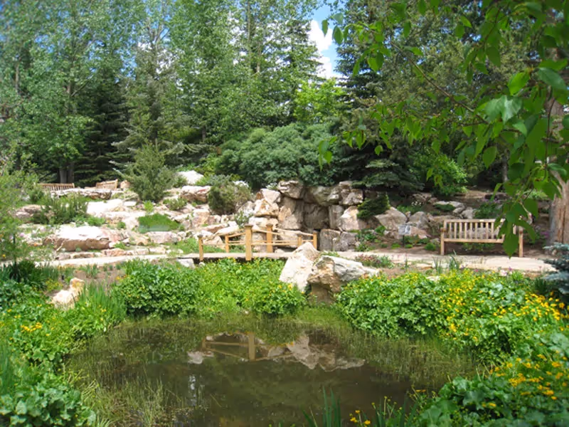 Each "room" of the garden features a different microclimate, with appropriate plantings - including a pond garden, high desert garden, perennial gardens, a meditation garden, etc.