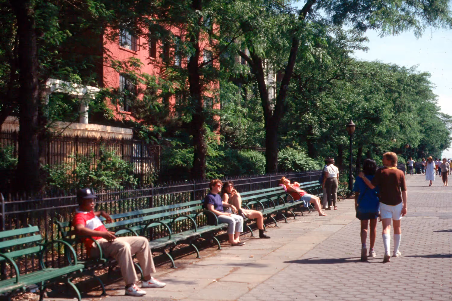 People of all ages go to the Promenade to hang out with their friends. It is quite common for two people who find themselves sitting next to each other on the Promenade's benches to strike up conversation. Tourists often ask locals to take their picture in front of the Manhattan skyline. Although the Promenade has helped drive Brooklyn Heights' gentrification, the Promenade draws people from everywhere, and the diversity on display is beautiful.