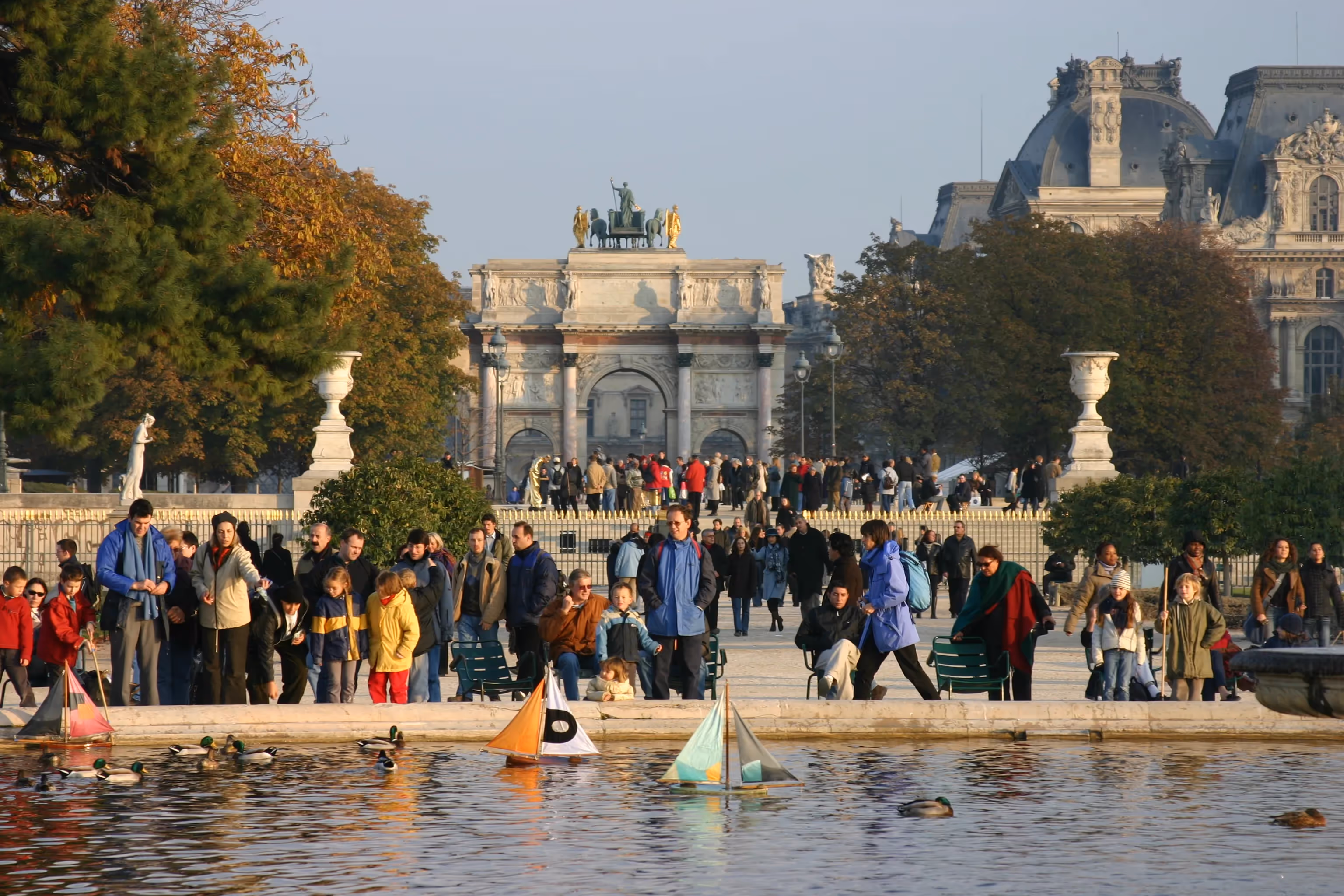 These tranquil gardens have a bloody history. Louis the XVI and Marie Antoinette were held prisoner in the palace, after being routed from Versailles during the French Revolution, and the siege at the Tuileries by the Parisian mob at the close of the revolution in 1893 left a thousand dead. The Tuileries Palace was looted and burned once again during the Paris Commune. The Tuileries Gardens were one of the first to open to the public, and have served as a proto-type for public gardens across Europe. Even at that time, the gardens boasted cafes and kiosks, places where people of all social classes could meet and relax. A recent renovation of the gardens has incorporated them into the extended Louvre and Grand Axis vista.