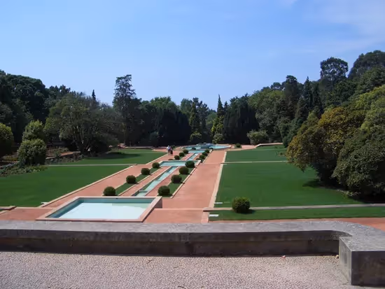 The Park consists of numerous distinctive sections, each with its own set of characteristics, yet which flow into one another naturally. Beginning at the House, which dominates the upper portion of the park, the immediate garden is structured around a 500 metre central axis, which projects in the direction of the Douro River and extends downwards at different levels, with lawns, flower beds and sloping water falls. This portion is bordered by walls and trees. At the end of this more formal garden, a stairway leads down to a small lake, "The Romantic Lake", which interrupts the central axis, before proceeding down to the fields, pastures and greenhouses. Upon reaching the far end of the park, one finds the former stables.