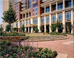 The neat things about the Ratcliffe are: underground parking deck with new and great interactive passive park on the top which includes fish fountains, built-in cement chess boards on stone tables, landscape walkways with motion activitated stone walls that make nature sounds, built in hopscotch on the ground, several built in riddles on the ground, neat statues of books, international street signs, and more. This is a really interactive and yet stimulating passive park or public space. The Ratcliffe Residential Building is named after the historic flower shop on the ground level that was moved and then replaced in its original position with the new building built around it. The new building itself is attractive to look at and offers a neat and unique addition to downtown Charlotte. The park is surrounded by 60,000 square feet of retail and office space. Restaurants and retail shops will open to the park from a European-style arcade positioned along one side of the park and a three-story brick and glass building on the opposite side, overlooking the park.
