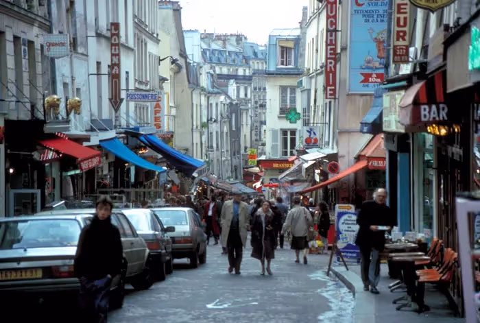 Rue Mouffetard is a remnant of an old Roman road. Some buildings date from the 12th century, and many have distinct histories; in a sense, this street represents the history of Paris. The market fills its lower half every morning, and people come to do their daily shopping. Its vitality is reminiscent of a scene from the Middle Ages. After the market closes, restaurants open up, offering a wide variety of ethnic foods and more stereotypically French food at cafes and creperies.