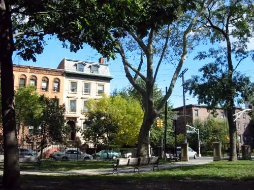 A beautiful brownstone neighborhood surrounds this picturesque, community park.