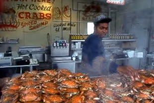 A bustling seafood and fish market on Washington's waterfront. Crabs, lobsters and fish are sold from floating barges. This place is popular with locals, and not at all a tourist trap. Devoid of the usual consumer mall culture, it's an authentic example of urban commerce at the street level. Ironically, it flourishes just beyond revitalized portions of the DC waterfront, which are cold and empty modernist concrete places, totally devoid of people.