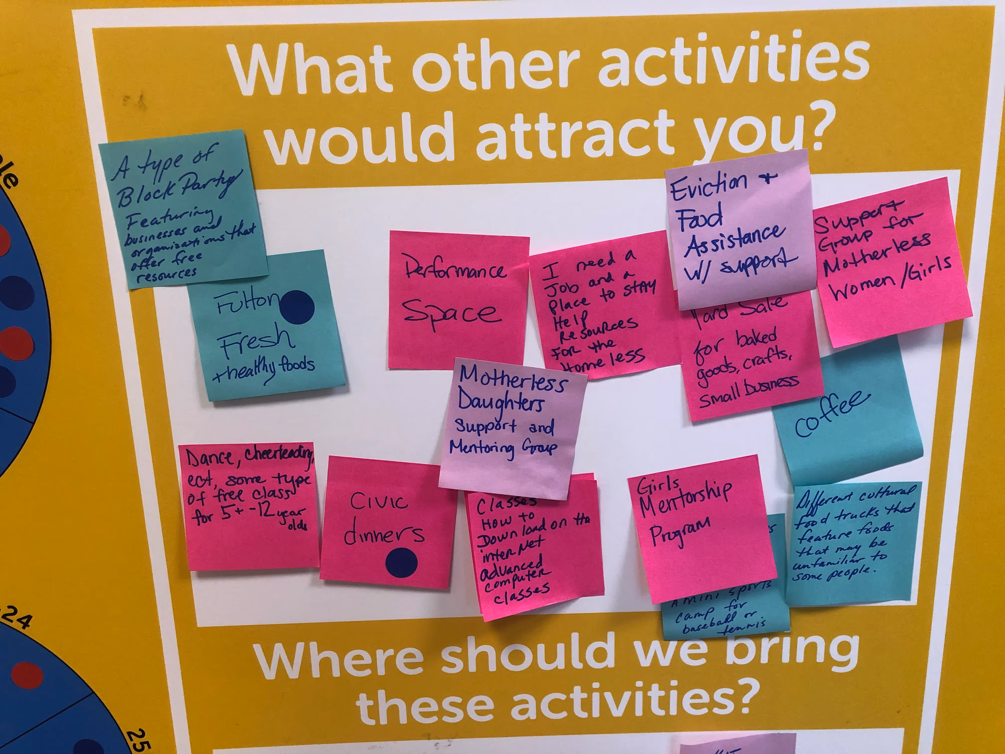 As the Covid-19 pandemic swept through Fulton County and the world, the idea to extend the library outdoors turned out to be a prescient choice. To gauge what the local community wanted out of the project, Project for Public Spaces and FCLS gathered ideas from pop-up boards and an online survey to fine-tune what the All Access Library could provide in terms of programming and amenities. Through this process, it became clear that people wanted the mobile library environment to support programming focused on wellness literacy at the Southeast branch, foster entrepreneurship at the Metropolitan branch, and reconnect families at the Central Library.