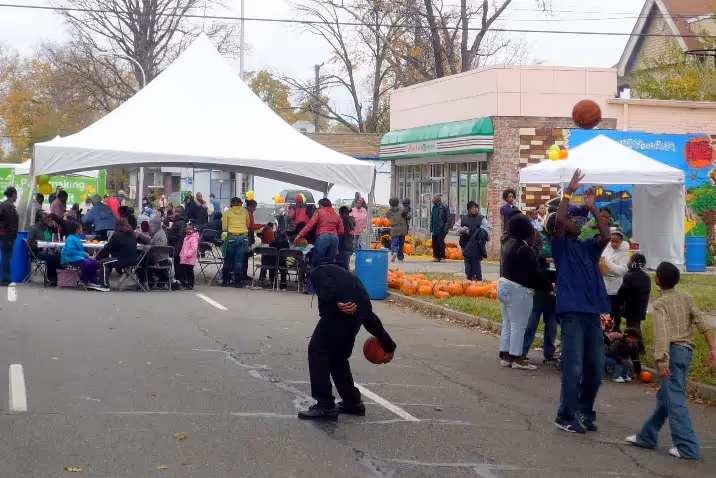Central Detroit Christian (CDC) engaged Project for Public Spaces to conduct a placemaking workshop with neighborhood stakeholders focusing on Peaches & Greens and the area immediately around the produce market. To elicit broader community participation and more ideas about activities, uses, services, and amenities for public spaces and existing buildings, Project for Public Spaces and CDC hosted a community Harvest Festival in October 2011 to demonstrate possible regular activities for the area. The festival, which attracted over 450 people and closed a major street to traffic, engaged the community in a casual setting to envision places as catalysts for positive change in the neighborhood. Following the event, Project for Public Spaces developed a program of uses and activities and a series of placemaking concepts for the area.